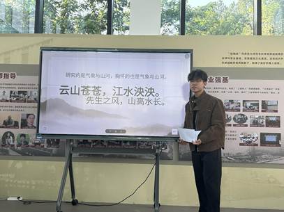 第二组同学以竺可桢先生的生平经历入手引出其教育精神的核心——求是精神,并从时代与现实意义出发以高度赞扬:云山苍苍,江水泱泱;先生之风,山高水长。