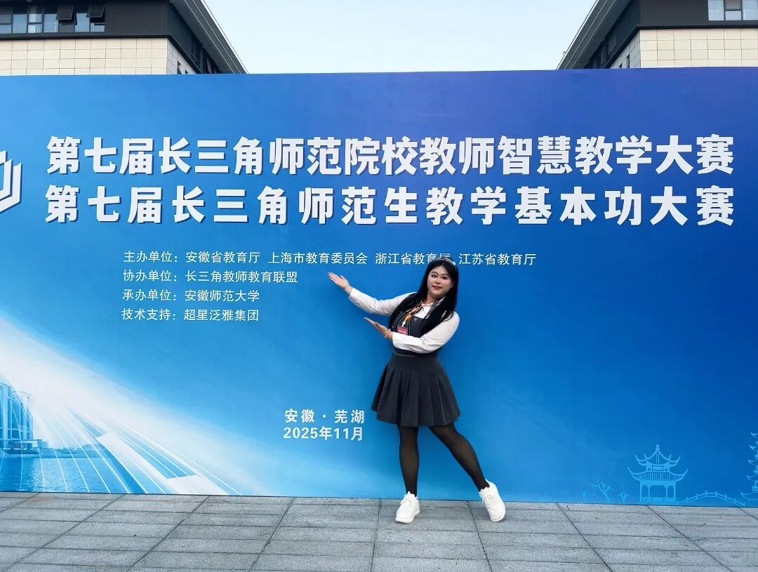 2025年11月14日-16日,第七届长三角师范生教学基本功大赛于安徽师范大学花津校区成功举办。我院参赛学子凭借扎实的专业功底、出色的教学设计和稳定的现场发挥,从众多优秀选手中脱颖而出斩获多项大奖。其中,章渝婕获小学组一等奖、项镕宇获小学组三等奖、叶子涵获学前组三等奖,创造了新的历史!