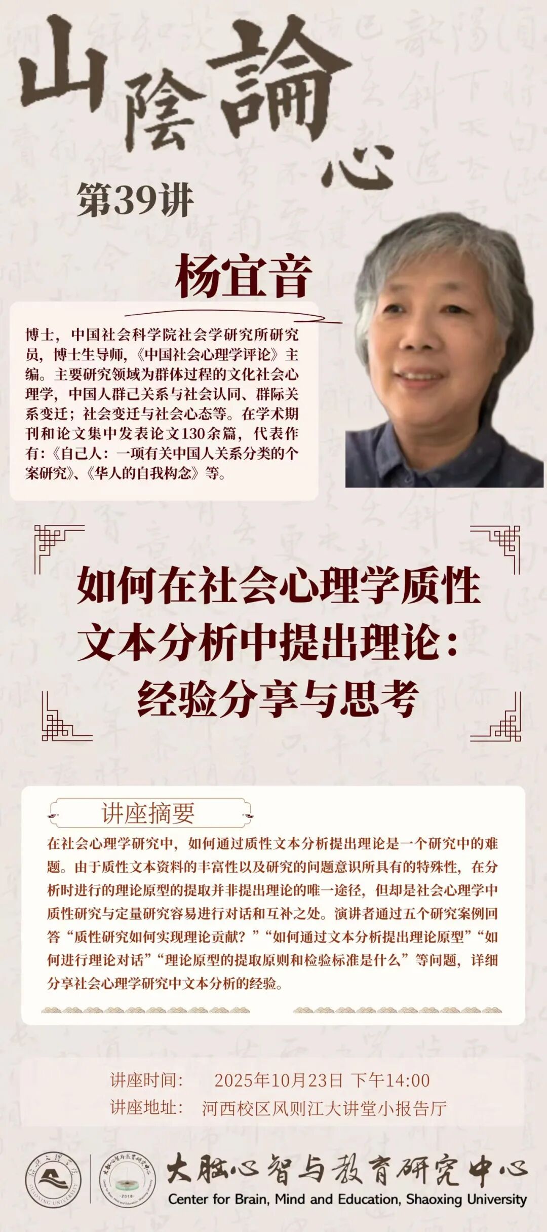 在社会心理学研究中,如何通过质性文本分析提出理论是一个研究中的难题。由于质性文本资料的丰富性以及研究的问题意识所具有的特殊性,在分析时进行的理论原型的提取并非提出理论的唯一途径,但却是社会心理学中质性研究与定量研究容易进行对话和互补之处。演讲者通过五个研究案例回答“质性研究如何实现理论贡献?”“如何通过文本分析提出理论原型”“如何进行理论对话”“理论原型的提取原则和检验标准是什么”等问题,详细分享社会心理学研究中文本分析的经验。