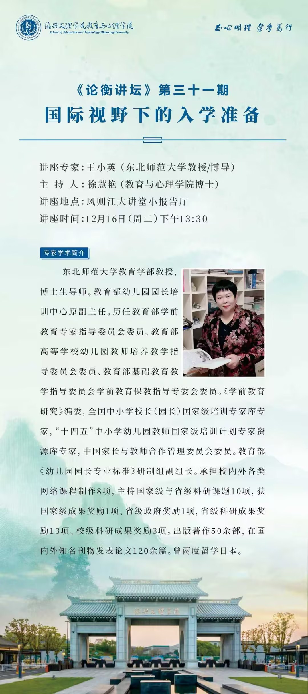 讲座预告丨论衡讲坛第31讲:国际视野下的入学准备