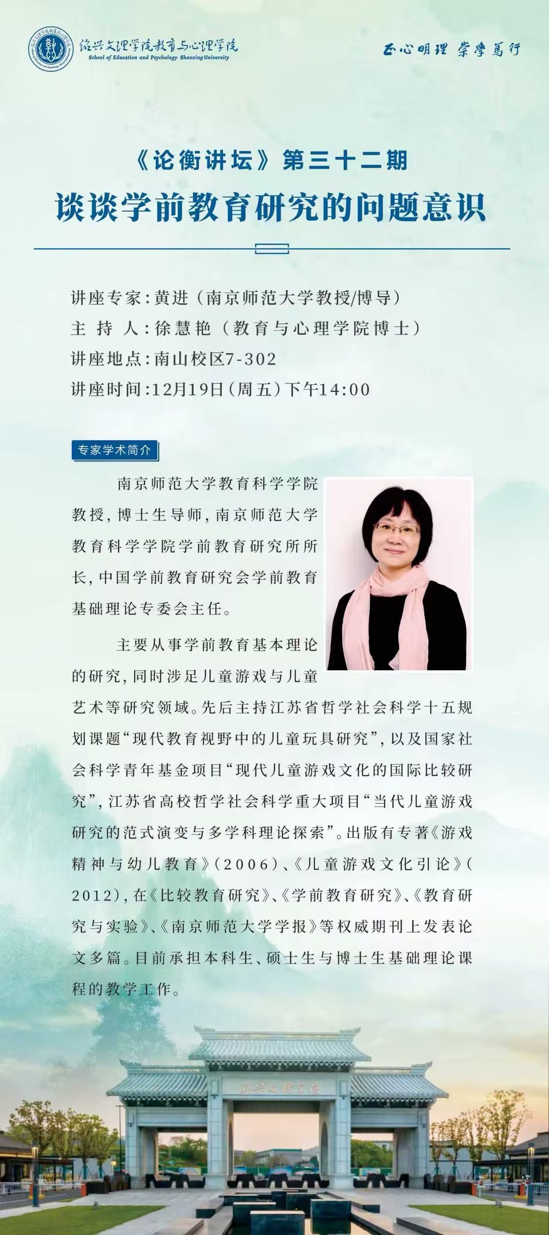 讲座预告丨论衡讲坛第32讲:谈谈学前教育研究的问题意识