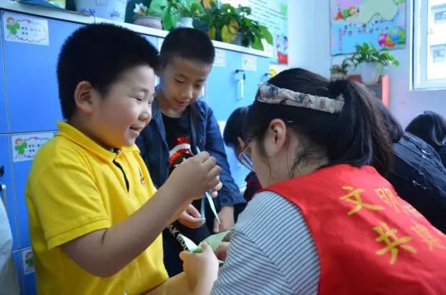 近日,我院青协志愿者一行八人在院团委书记侯端阳老师的带领下走进绍兴市树人小学中校区一(5)班开展了“童心飞扬,欢度六一”活动,与孩子们一起度过一个特别的儿童节。