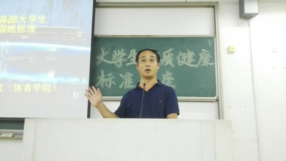 为普及体质健康新标准,呼吁我院同学强锻炼,9月27日晚6点半我院于南山校区9-201教室举行大学生体质健康标准讲座,本次讲座张全全老师主持,由体育学院院长周思红老师讲解。
