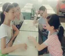 志愿者郭杰丹把数字的摆放问题作为切入点,引导孩子们了解有关火柴棒移动的数学问题。她利用生活中常见的白纸制作教具,直观生动地演示了数学问题,将数学与生活自然结合,并积极鼓励学生进行思维拓展。全班被分成6个四人小组,由郭老师引导各小组成员合理利用下发的道具进行合作探索实践、互补共享知识。