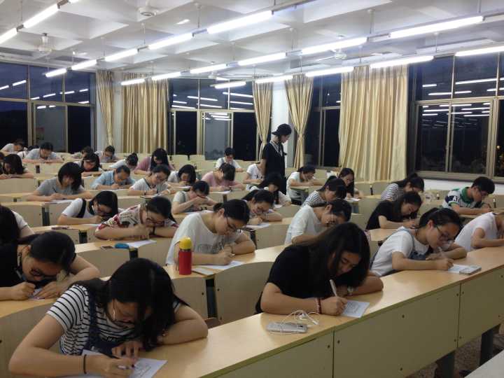 在笔试开始前,教室里就坐满了前来参加考试的竞聘者们,期间不时传出此起彼伏的小声交流,气氛略微紧张。晚上七点,考试准时开始,竞聘者们拿起笔认真地埋头答题,教室里只听得到笔和纸的摩擦声。考试试题共四大题,主要考察竞聘者们对部门的认识及见解,试题精简而到位。有些笔试者轻皱着眉头,一边思考,一边笔也不停,快速地在纸上写着。挥笔如行云流水,大家纷纷在考卷上描摹自己的雄心壮志。