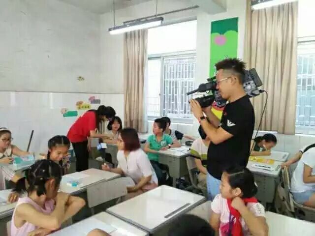 志愿者们为小候鸟们准备了“画五官”、“你划我猜”和 “击鼓传花”等游戏。孩子们全情投入,积极参与。在“你划我猜”的环节中,各组成员们尽情发挥着自己的肢体语言天赋,描述着各种事物,而负责猜测的同学则是紧张激动地观察着组员的动作以猜测其描述的是什么,争取快且准确地完成游戏。同时,新昌电视台节目组也来到了澄潭镇小,记录了孩子们喜爱的硬笔书法课,并采访了几个孩子以及此次帮扶团的相关同学,深入了解了我们的志愿活动,以便将我们的小候鸟帮扶团带到更多人的视野中,让更多人了解这个活动,了解这些孩子。
