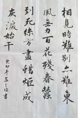 起笔之时,藏而不露;行笔之期,不偏不倚;收笔之际,缓缓出头。本组选手一气呵成,为我们带来了李商隐的《无题》,表达了自己“蜡炬成灰泪始干”的无私奉献之心,同时也传递着终为人、终育人、终传仁的师者精神。
