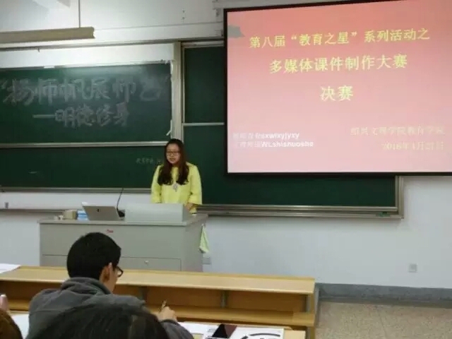 为展示我校师范生的风采,增强同学们应用多媒体的能力,提高师范生的职业技能,4月27日晚,由我院团委学生会主办的多媒体课件制作大赛决赛在元培6-408如期进行,多媒体制作专家俞利君老师、王钢锋老师以及教育学博士张建桥老师担任此次比赛的评委。