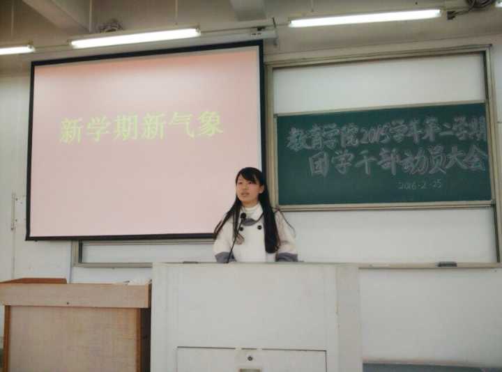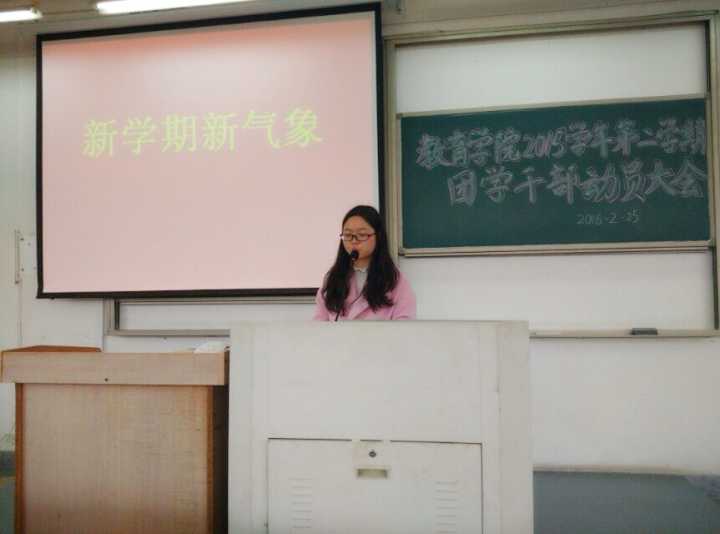 然后,由我院团委副书记丁思敏同学以及院学生会主席叶丹同学分别部署了新学期的团委和学生会工作。