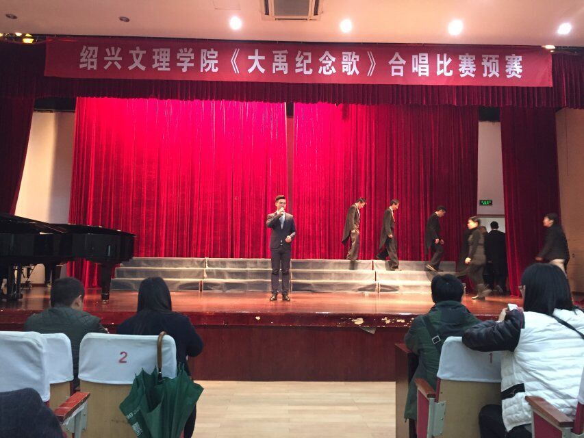 为了纪念大禹治水的伟大历史功绩,弘扬坚韧不拔,无私奉献的治水精神,传播积极向上的正能量,我校于12月2日下午2点在河东月明音乐楼隆重举行了《大禹纪念歌》合唱比赛初赛,比赛分 为上下两场,上半场由教师队伍组成,其中,我院教职工和人文学院教职工共同合唱参赛;下半场由学生队伍组成,我院学生合唱团参赛。比赛在13支教师参赛队伍以及15支学生参赛队中分别选出前六名进入决赛。此次比赛由校团委副书记金一鸣老师、音乐学院李秀瑜老师和张琦老师等担任评委。