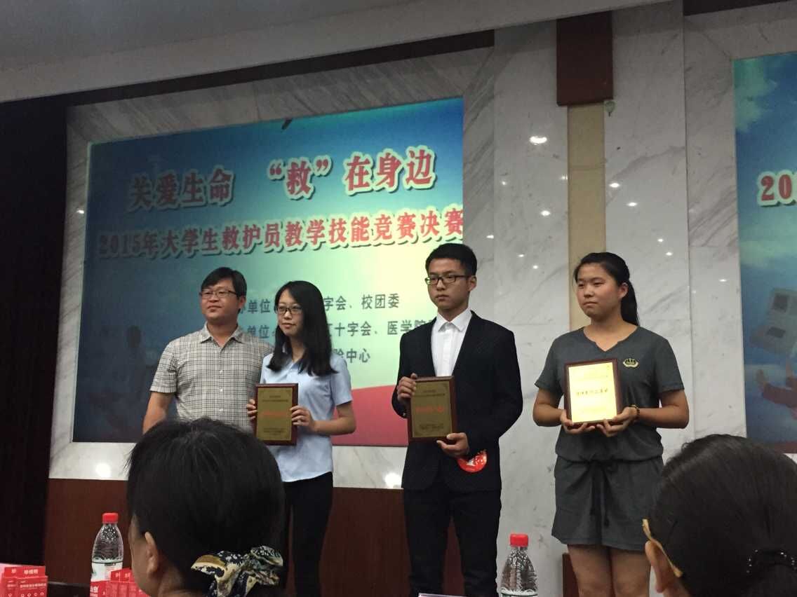 此次比赛,由院学生科科长陈盈盈老师担任领队,孟炜、叶丹等同学组成一支参赛队伍代表我院参加。本次比赛内容由优秀课件评比和优秀救护员评比组成。我院的王洁、黄金燕、傅玉婷同学合作制作了以休克、中毒和踩踏为主题的课件,生动形象地为现场评委和观众介绍了与此相关的应急救护知识。在优秀救护员评比初赛环节,我院孟炜和叶丹同学分别给观众讲解了有关心肺复苏和中暑的救护知识,成功晋级决赛,精彩地诠释了“关爱生命,救在身边”的主题,赢得了在场评委和观众的高度评价。最后,经过评委的评判,我院参赛队伍凭借精彩的表现,取得本次救护技能大赛团体一等奖、课件制作一等奖的佳绩。其中来自小教132班的孟炜同学还凭借突出的表现获得优秀救护员二等奖,小教133班的叶丹同学获得优秀救护员三等奖。