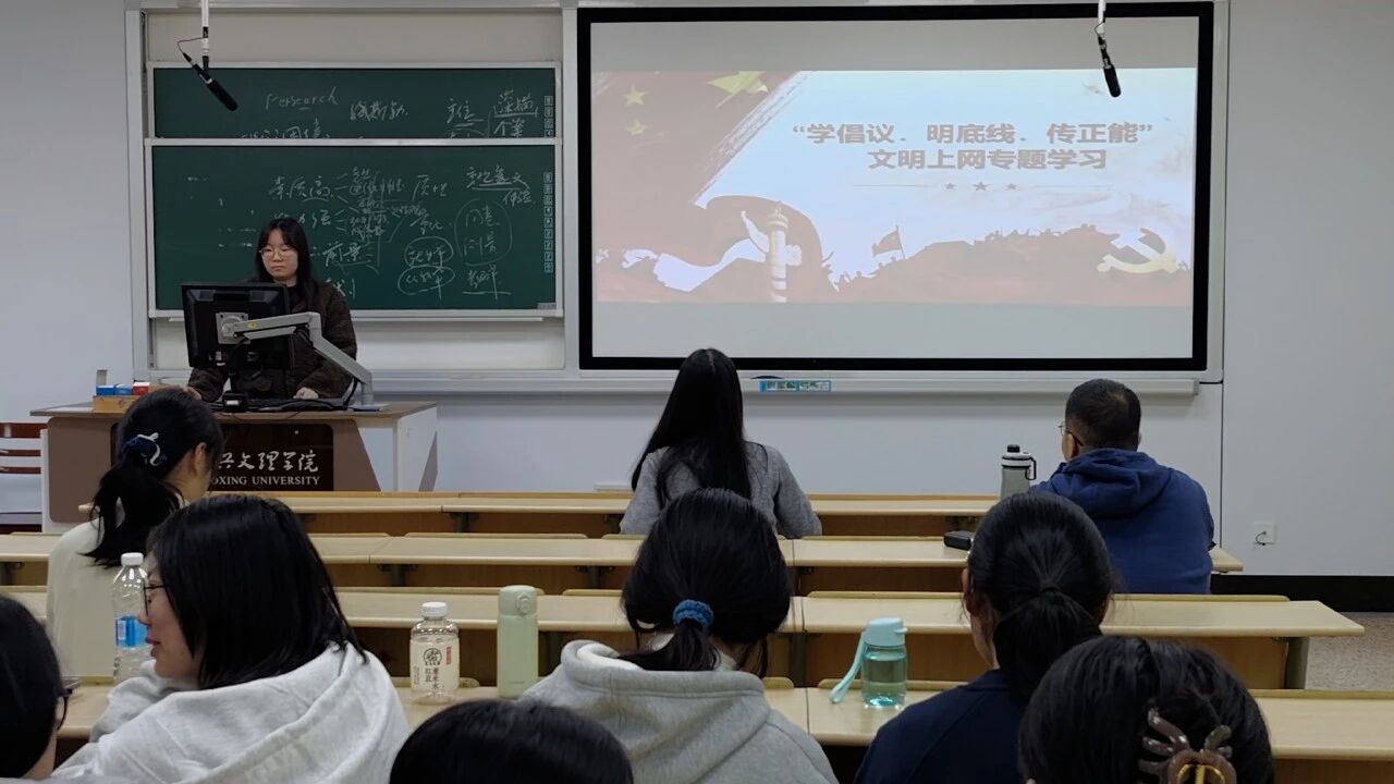 为引导团员明确网络行为边界,团支部紧接着开展了“学倡议·明底线·传正能”文明上网专题学习。学习中,团支书围绕文明上网倡议书核心内容,逐点解读“依法上网守底线、理性上网辨是非、文明上网友善交流、安全上网防风险、绿色上网健康生活”五大要求,结合《网络安全法》重点条款,剖析网络谣言、恶意攻击等行为的法律后果与社会危害。团员们通过集体研读、案例讨论深化认知,纷纷表示将主动抵制不良信息,传播网络正能量。此次学习让大家清晰掌握文明上网的具体准则,筑牢网络安全思想防线,为共建清朗网络空间凝聚青春共识。