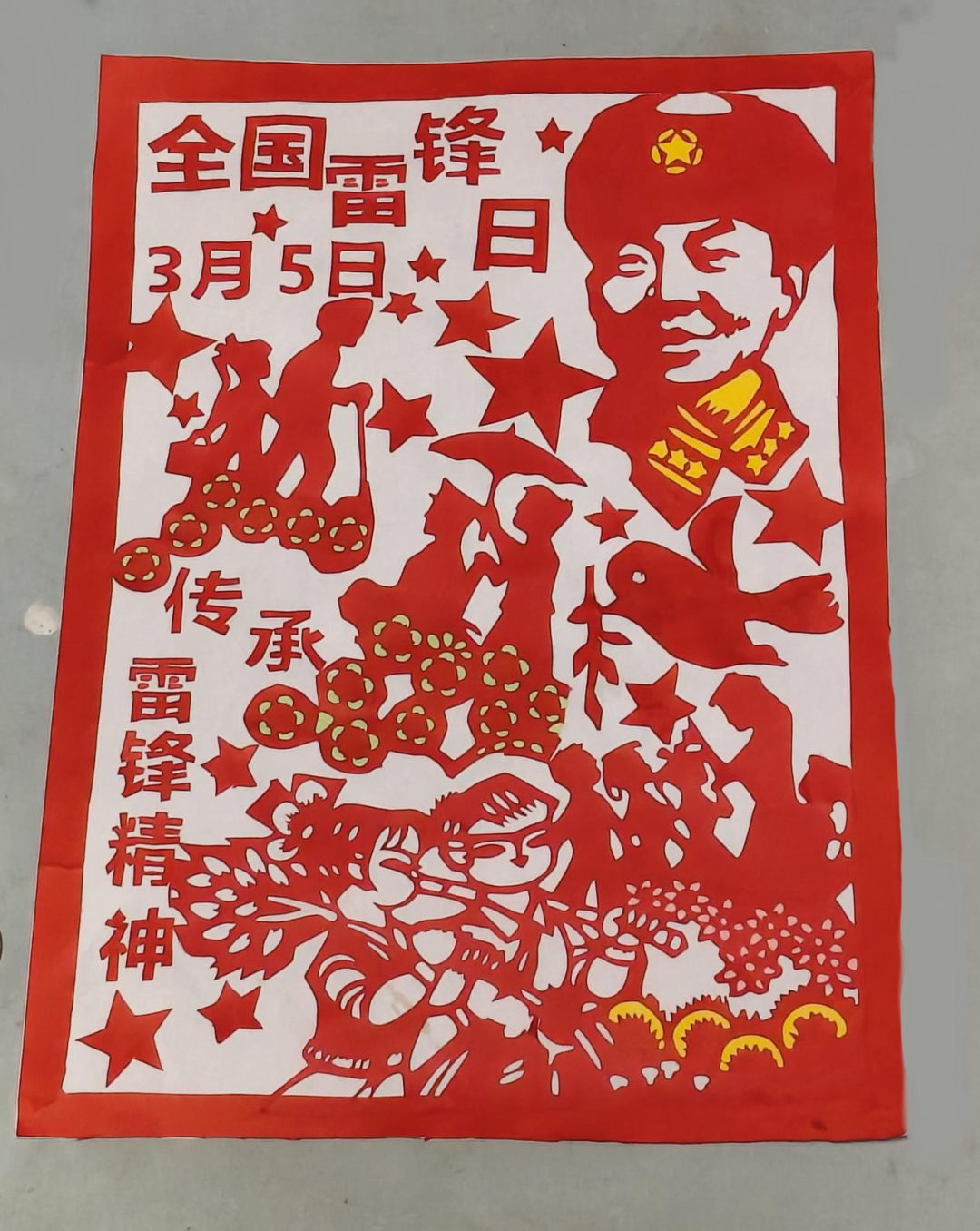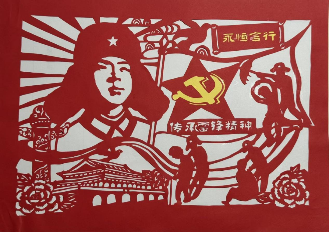 红纸为媒,刀剪为笔,刻绘雷锋英容,凝铸奉献之魂,在纸韵红韵中传递温暖,致敬时代榜样。