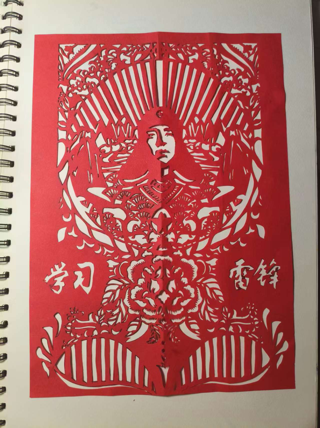 在本次活动中,同学们通过一刀一剪让雷锋精神跃然纸上,既领略了非遗剪纸的独特魅力,又在创作中深化了对助人为乐、无私奉献的雷锋精神的理解。而这一张张剪纸,是对榜样的深情致敬,大家细心裁剪,细细勾勒雷锋身影,并在切实的活动中感悟榜样力量,将赤子情怀与奉献精神融入精巧作品。
