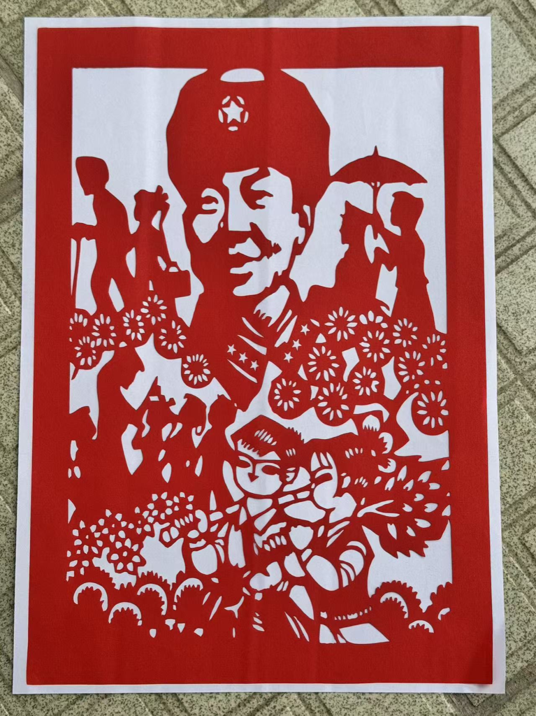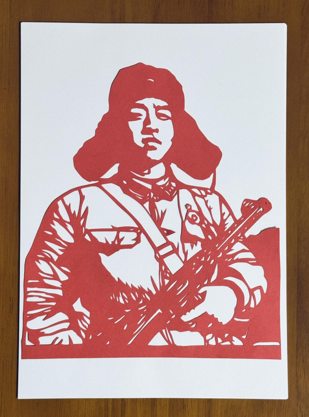这幅剪纸以雷锋形象为核心,搭配“为人民服务”与松枝元素,既致敬雷锋无私奉献的一生,也传递出全心全意为人民服务的精神内核,是对雷锋精神的当代传承与弘扬。